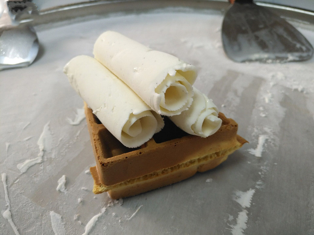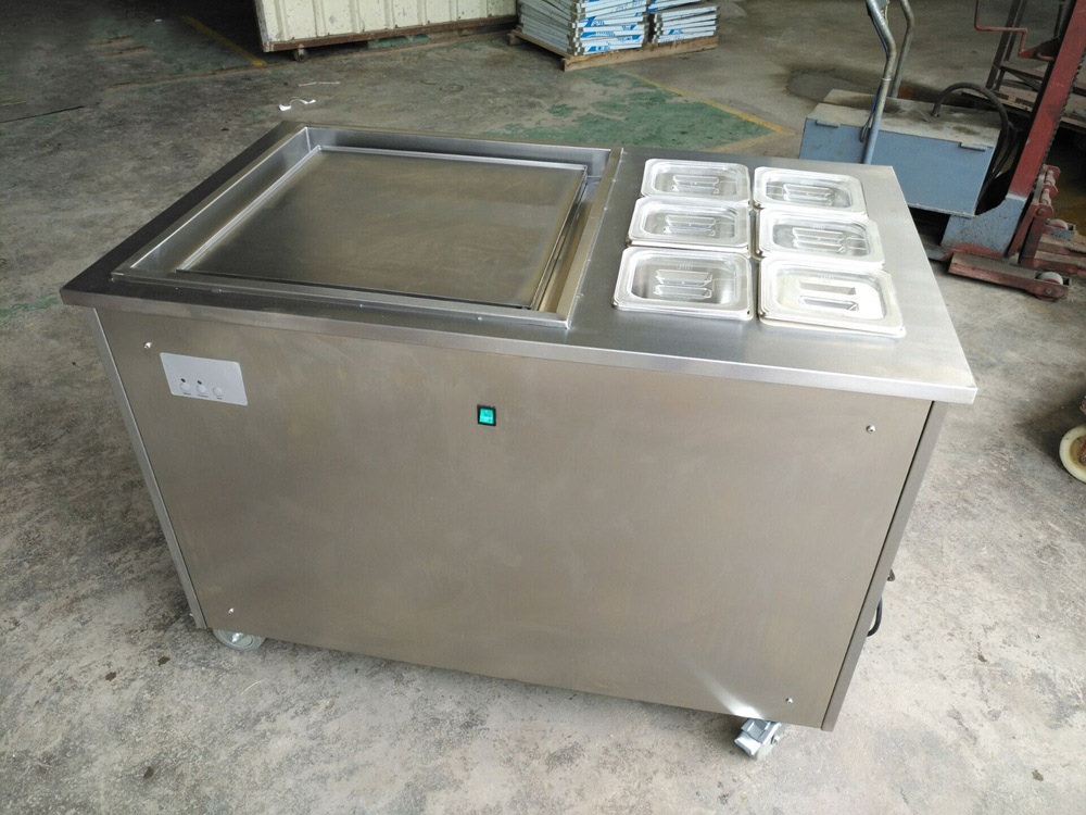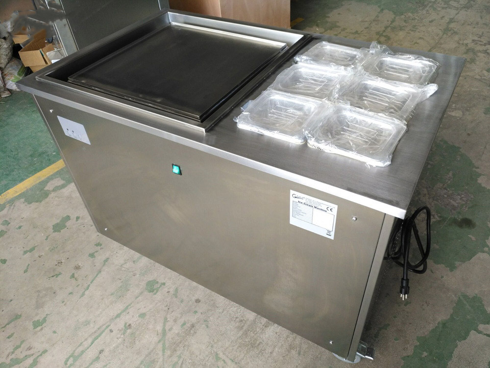 The fry ice cream machine is a new type of mixing ice machine, can make the hard and soft ice cream. In addition, before the production can join different fruits, you can also add some ornament snacks, such as fruit, nuts, candy, biscuit, etc. It makes be good-looking and delicious taste of ice cream, Cater to people of different tastes.